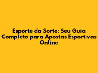Olá, pessoal! Se você é fã de esportes e adora aquela adrenalina de apostar nos seus times e atletas favoritos, então você está no lugar certo. Neste guia completo sobre o Esporte da Sorte, vamos mergulhar no universo das apostas esportivas online, explorando tudo o que você precisa saber para começar, desde como se cadastrar até as melhores dicas para aumentar suas chances de sucesso. Prepare-se para uma jornada emocionante, cheia de informações valiosas e dicas imperdíveis para você se tornar um apostador de sucesso! Vamos lá?