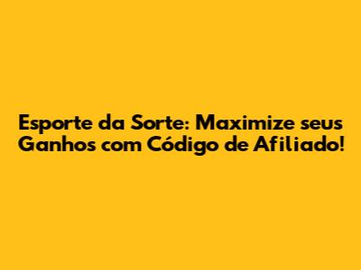 Esporte Da Sorte: Maximize Seus Ganhos Com Código De Afiliado!