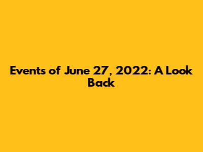 Events Of June 27, 2022: A Look Back