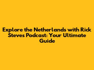 Explore The Netherlands: Rick Steves Podcast Guide