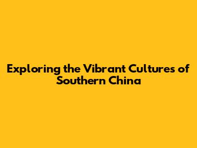 Exploring The Vibrant Cultures Of Southern China