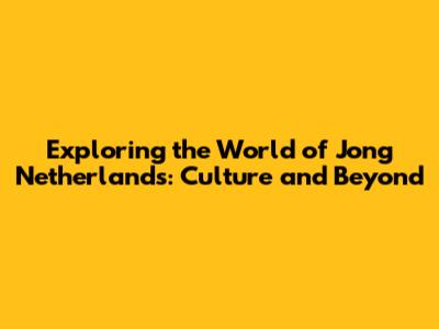 Exploring The World Of Jong Netherlands: Culture And Beyond