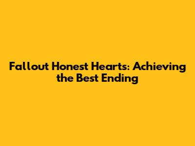 Fallout Honest Hearts: Achieving The Best Ending