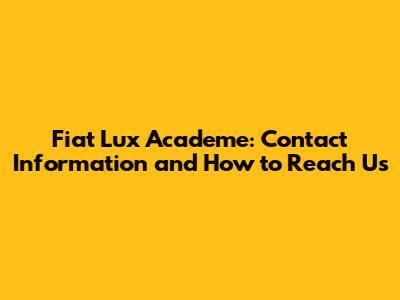Fiat Lux Academe: Contact Information And How To Reach Us