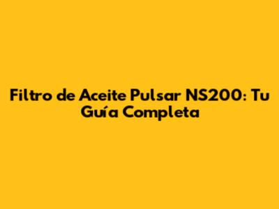 Filtro De Aceite Pulsar NS200: Guía Completa