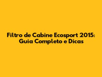 Filtro De Cabine Ecosport 2015: Guia Completo E Dicas