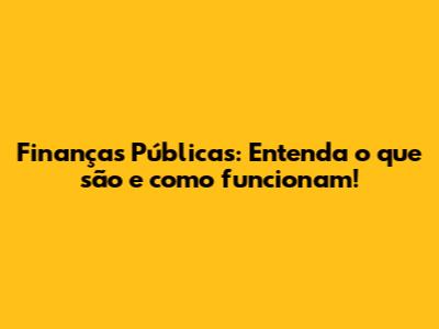 Como Funcionam as Finanças Públicas?
