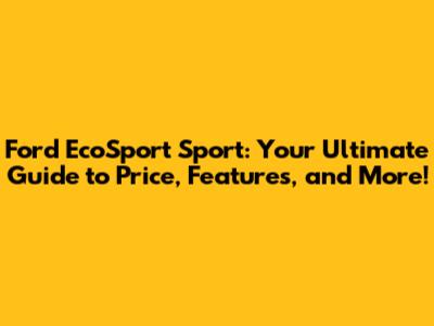 Ford EcoSport Sport: Price, Features, And Everything You Need!