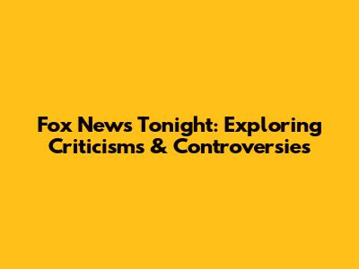 Fox News Tonight: Exploring Criticisms & Controversies