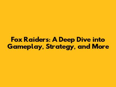 Fox Raiders: A Deep Dive Into Gameplay, Strategy, And More