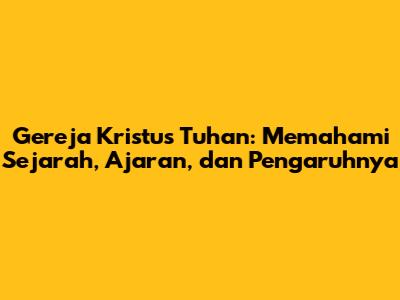Gereja Kristus Tuhan adalah salah satu denominasi Kristen yang memiliki sejarah panjang dan pengaruh signifikan dalam masyarakat. Buat kalian yang penasaran dengan gereja ini, artikel ini akan membahas secara mendalam tentang sejarah, ajaran pokok, struktur organisasi, serta peran pentingnya dalam kehidupan sosial. Mari kita bedah bersama-sama!