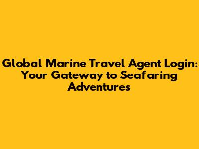 Global Marine Travel Agent Login: Your Gateway To Seafaring Adventures