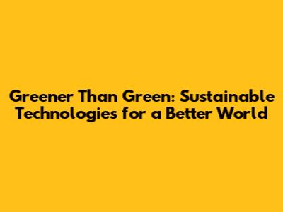 Greener Than Green: Sustainable Technologies For A Better World