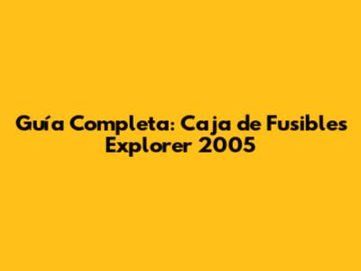 Guía Completa: Caja De Fusibles Explorer 2005