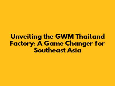 Unveiling the GWM Thailand Factory: A Game Changer for Southeast Asia