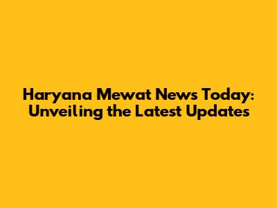 Haryana Mewat News Today: Breaking Updates & Local Insights