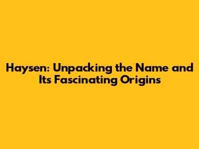 Haysen: Understanding The Name And Its Origins