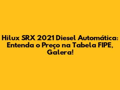 E aí, pessoal! Se você tá de olho na Toyota Hilux SRX 2021 Diesel Automática, com certeza já se pegou pensando: "Qual o preço justo dessa belezinha?". E é aí que entra a famosa Tabela FIPE, a nossa melhor amiga na hora de avaliar o valor de um carro usado, né? Pois é, hoje a gente vai desmistificar tudo sobre a Tabela FIPE da Hilux SRX 2021 Diesel Automática, pra você sair daqui sabendo exatamente o que esperar. Vamos nessa?