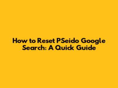 Step-by-Step Guide to Resetting PSeido Google Search
