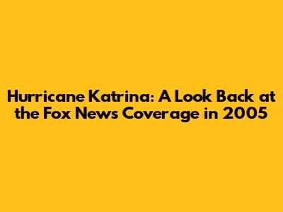 Hurricane Katrina: Fox News Coverage Of The 2005 Disaster