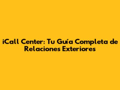 ICall Center: Tu Guía Completa De Relaciones Exteriores