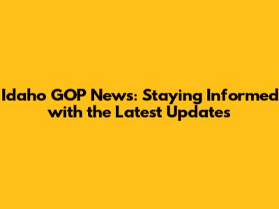 Idaho GOP News: Latest Updates And Developments