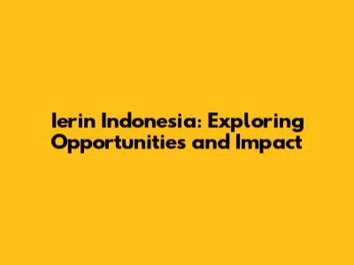 Ierin Indonesia: Exploring Opportunities And Impact