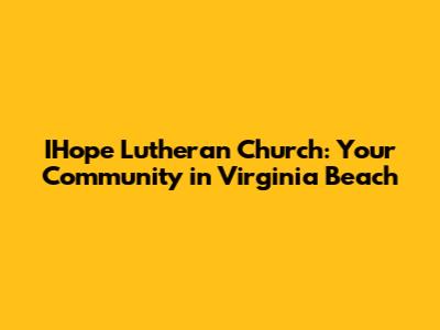 In essence, IHope Lutheran Church is a beacon of hope and a source of inspiration for the Virginia Beach community. It's a place where people can come together to worship, learn, grow, and serve. It's a place where you can find your purpose, discover your gifts, and make a difference in the lives of others.