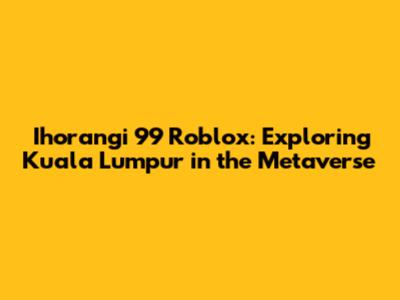 Hey guys! Have you ever wondered what it would be like to explore Kuala Lumpur, but in the metaverse? Well, buckle up because we're diving deep into the world of Ihorangi 99 Roblox, where you can do just that! This unique Roblox experience lets you virtually wander through the iconic streets and landmarks of Kuala Lumpur, offering a fun and engaging way to discover the city. In this article, we'll explore everything about Ihorangi 99 Roblox in Kuala Lumpur, from what makes it so special to how you can jump in and start your virtual adventure. So, grab your avatar and let’s get started!