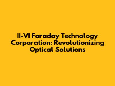 Let's dive into the world of II-VI Faraday Technology Corporation, a name that might not be on everyone's lips, but plays a crucial role in the advancement of optical technology. In this article, we'll explore who they are, what they do, and why their contributions matter in today's tech-driven world. Buckle up, tech enthusiasts, because we're about to embark on an illuminating journey!
