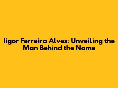 Iigor Ferreira Alves: Unveiling The Man Behind The Name