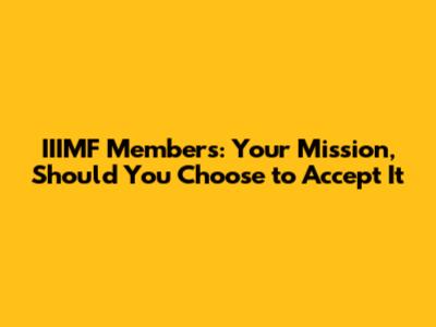 IIIMF Members: Your Mission, Should You Choose To Accept It