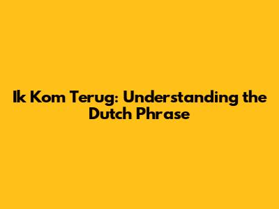 Ik Kom Terug: Meaning And Usage