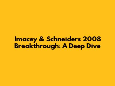 Imacey & Schneider's 2008 Breakthrough