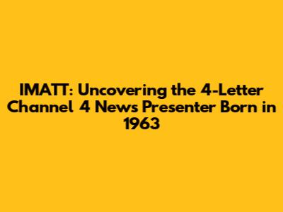 So, who could this elusive IMATT be? The first thing to consider is the nature of the clue itself. If IMATT isn't a direct surname or first name, it could be an acronym, a part of a name, or even a typo. However, given the context of a trivia question, it's more likely to be a slightly disguised reference or a surname that's very distinctive. Let's think about prominent Channel 4 News presenters, particularly those who would have been active in the years following 1963, and whose careers might have started around the late 80s or 90s. We need someone whose name could potentially be reduced to or hinted at by 'IMATT' and who also fits the four-letter constraint. This is where it gets tricky, guys. Most well-known news presenters have longer names. So, we have to be creative. Could 'IMATT' be a playful reference to someone whose name sounds similar or contains those letters in sequence? For instance, some presenters might have a middle name or a less commonly used part of their name that fits. Or perhaps, 'IMATT' is an anagram? That's a possibility we can't rule out just yet. But the most probable scenario is that the clue refers to a surname or a first name that fits the four-letter rule. We need to cross-reference lists of Channel 4 News presenters with birth dates and names. This involves a bit of digital digging. We're looking for individuals who started their careers in the public eye perhaps in the late 80s or 90s, making them prime candidates for being born in 1963. If they were born in 1963, they would be in their late 20s or early 30s when starting out, which is a very common age for entering high-profile journalism. Let's consider some famous faces associated with Channel 4 News over the years. While many might have longer names, the four-letter constraint is absolute. This means we're likely looking at a surname like 'Ayre', 'Bell', 'Cole', 'Dunn', 'Ford', 'Hall', 'King', 'Lane', 'Page', 'Reed', 'Shaw', 'Ward', or 'Wynn'. Or perhaps a first name like 'Anna', 'Andy', 'Ben', 'Carl', 'Dale', 'Eric', 'Gary', 'Ivan', 'John', 'Mark', 'Neil', 'Paul', 'Sean', 'Steve', 'Todd', 'Vince', or 'Wayne'. Now, the challenge is to connect one of these four-letter names with a presenter who was born in 1963 and possibly has a connection to the mysterious 'IMATT'. This requires looking at presenters who might have had a career arc that aligns with this timeline. Did anyone prominent join Channel 4 News in the late 80s or early 90s and was born in '63? This is where we start to look for overlaps. The 'IMATT' clue remains the most cryptic element. It could be a direct phonetic clue, a phonetic spelling of a name, or perhaps even a reference to a specific report or segment they were known for. The more we dissect the clue, the more we realize the depth of the puzzle. We're not just looking for any presenter, but one who fits all these very specific parameters, making the search both challenging and incredibly rewarding when the answer is finally revealed. The history of Channel 4 News itself is rich with talent, and many presenters have come and gone, leaving their mark in different ways. Our task is to identify the one who perfectly matches this unique set of criteria.