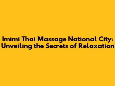 Imimi Thai Massage In National City: Your Ultimate Guide