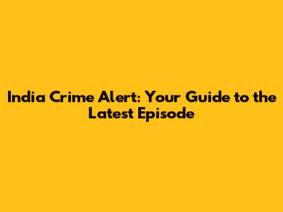 India Crime Alert: Latest Episode Guide