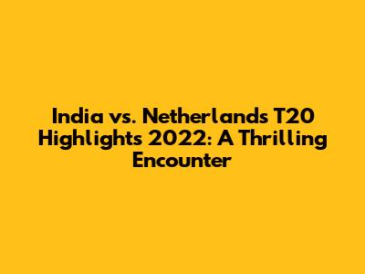 Hey sports fanatics! Let's rewind to the electrifying India vs. Netherlands T20 clash from 2022. This match was a rollercoaster of emotions, showcasing some incredible talent and nail-biting moments. We're going to dive deep into the highlights, break down the key plays, and relive the excitement. Get ready to have your memory refreshed and your cricketing spirit ignited! The 2022 T20 match between India and Netherlands was a classic, and for a good reason. It was filled with exciting moments, amazing batting, and superb bowling performances. The game saw both teams give their all on the field. The atmosphere was electrifying, and the fans were treated to a memorable sporting event. Let's not forget the incredible performances that defined this game. The players showcased their skills, determination, and passion for the sport. This match highlighted the best aspects of T20 cricket, making it a must-watch for any cricket enthusiast. The match was a demonstration of teamwork, strategy, and individual brilliance, providing entertainment from the first ball to the last. The India vs. Netherlands clash in 2022 will be remembered for its drama and excitement, demonstrating the spirit of T20 cricket. The game was also a test of character and skill, with each player giving their best. It's a game that will be talked about for a long time, celebrated for its thrilling moments and outstanding performances. Let’s remember the key moments, discuss the game-changing plays, and appreciate the outstanding performances that made this match so special. We'll be looking at the key players and the critical turning points that swung the game. We'll talk about the strategies used and the overall impact of the match on the teams involved. The India vs. Netherlands T20 game in 2022 was much more than just a cricket match; it was a showcase of skill, teamwork, and the relentless pursuit of victory. Each player put in their best effort, making sure the game was full of intense moments. The match was characterized by amazing catches, quick runs, and strategic bowling. This game perfectly demonstrated the core of T20 cricket, making it a thrilling spectacle for all cricket lovers. The India vs. Netherlands T20 encounter was a celebration of cricket. The match was packed with exciting moments, highlighting the best of the sport. From thrilling catches to strategic plays, the game had it all. It was a game that highlighted the spirit of competition and the passion for the sport. This game was a testament to the fact that T20 cricket is one of the most exciting forms of the game. Let's delve into the details, relive the key moments, and talk about the incredible performances of the players who made this match memorable.
