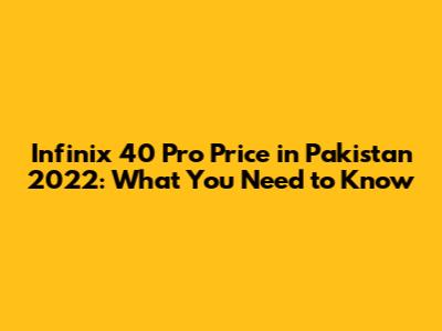 Infinix 40 Pro Price In Pakistan 2022: What You Need To Know