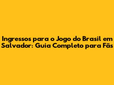 E aí, fãs de futebol! Se você está planejando ir ver o Brasil jogar em Salvador e está preocupado com os ingressos, chegou ao lugar certo. Neste guia, vamos te dar todas as dicas e informações que você precisa para garantir seu lugar no estádio e curtir a emoção de ver a Seleção Brasileira em ação. Vamos falar sobre onde comprar, como se preparar, e o que esperar do ambiente vibrante de Salvador durante um jogo da nossa amada seleção. Prepare-se para uma experiência inesquecível!