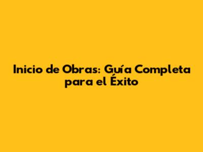 Inicio De Obras: Guía Completa Para El Éxito