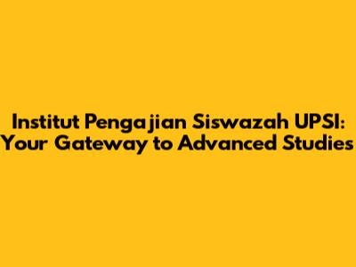 Hey guys! Ever wondered about taking your education to the next level? Let's dive into what the Institut Pengajian Siswazah (IPS) at Universiti Pendidikan Sultan Idris (UPSI) is all about. If you're thinking about pursuing postgraduate studies, this is definitely a place you should check out. Let's explore everything from the programs they offer to the resources available and how it can boost your career!