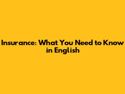 Insurance: What You Need To Know In English