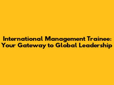 International Management Trainee: Your Gateway To Global Leadership
