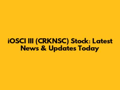 IOSCI III (CRKNSC) Stock: Latest News & Updates Today