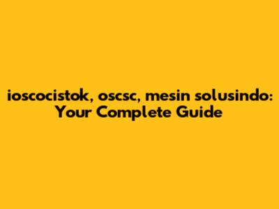 Ioscocistok, Oscsc, Mesin Solusindo: Your Complete Guide
