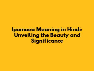 Ipomoea Meaning In Hindi: Unveiling The Beauty