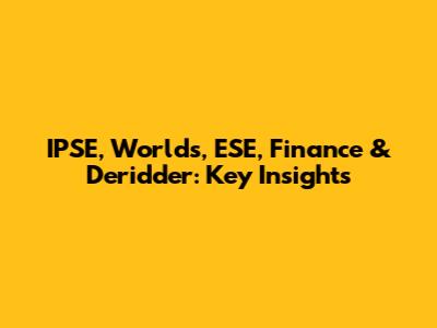 IPSE, Worlds, ESE, Finance & Deridder: Key Insights