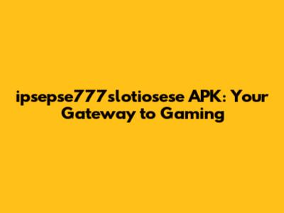 Ipsepse777slotiosese APK: Your Gateway To Gaming