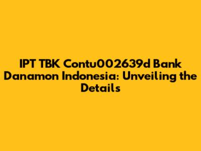 Let's dive into the world of IPT TBK and its connection with Bank Danamon Indonesia. You might be wondering, "What exactly is IPT TBK, and how does it relate to one of Indonesia's prominent banks?" Well, strap in, because we're about to break it down in a way that's easy to understand. This article aims to provide a comprehensive overview, ensuring you grasp the essentials without getting lost in complicated jargon. Think of it as your friendly guide to navigating the financial landscape!